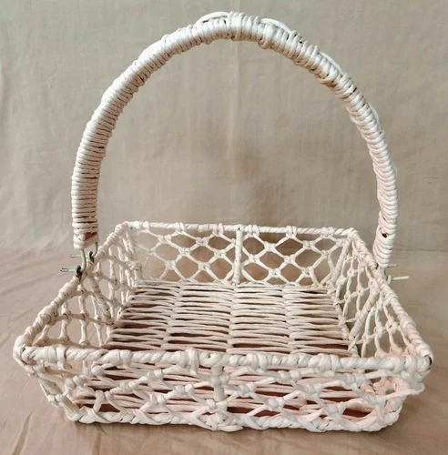 HANDWOVEN METAL FRAMED SQUARE WHITE BASKET WOVEN WITH RAFIA, FOR HOME DECOR, KITCHEN, LIVING ROOM, BED ROOM, DINING ROOM, BATHROOM, OFFICE